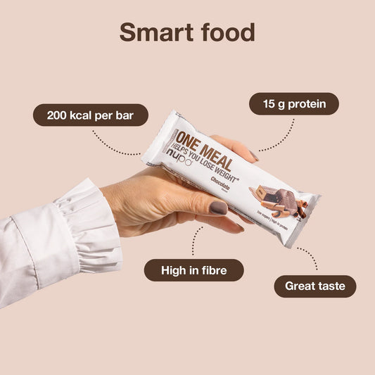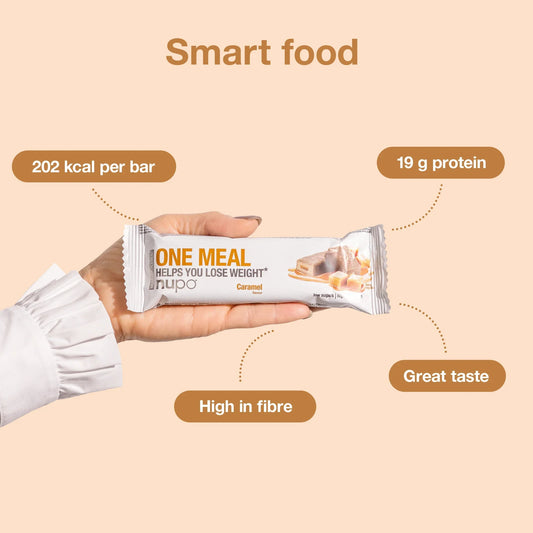 تعد بارات Nupo One Meal بديلاً للوجبات يمكن أن يحل محل 1-2 من وجباتك اليومية يوميًا. يمكن استخدام منتجات Nupo One Meal إذا كنت ترغب في الحصول على خسارة طفيفة في الوزن أو التحكم في وزنك - كل ذلك دون المساس بالعناصر الغذائية الأساسية. مع بدائل Nupo One Meal ، سهّلنا عليك تناول وجبة صحية ولذيذة بتركيبة غذائية كاملة مع انخفاض السعرات الحرارية. تعتبر مشروبات Nupo One Meal و-Bars و-Pancakes مثالية لجدول أعمالك اليومي المزدحم أو ممارسة الرياضة أو ببساطة للحفاظ على وزنك تحت السيطرة.-