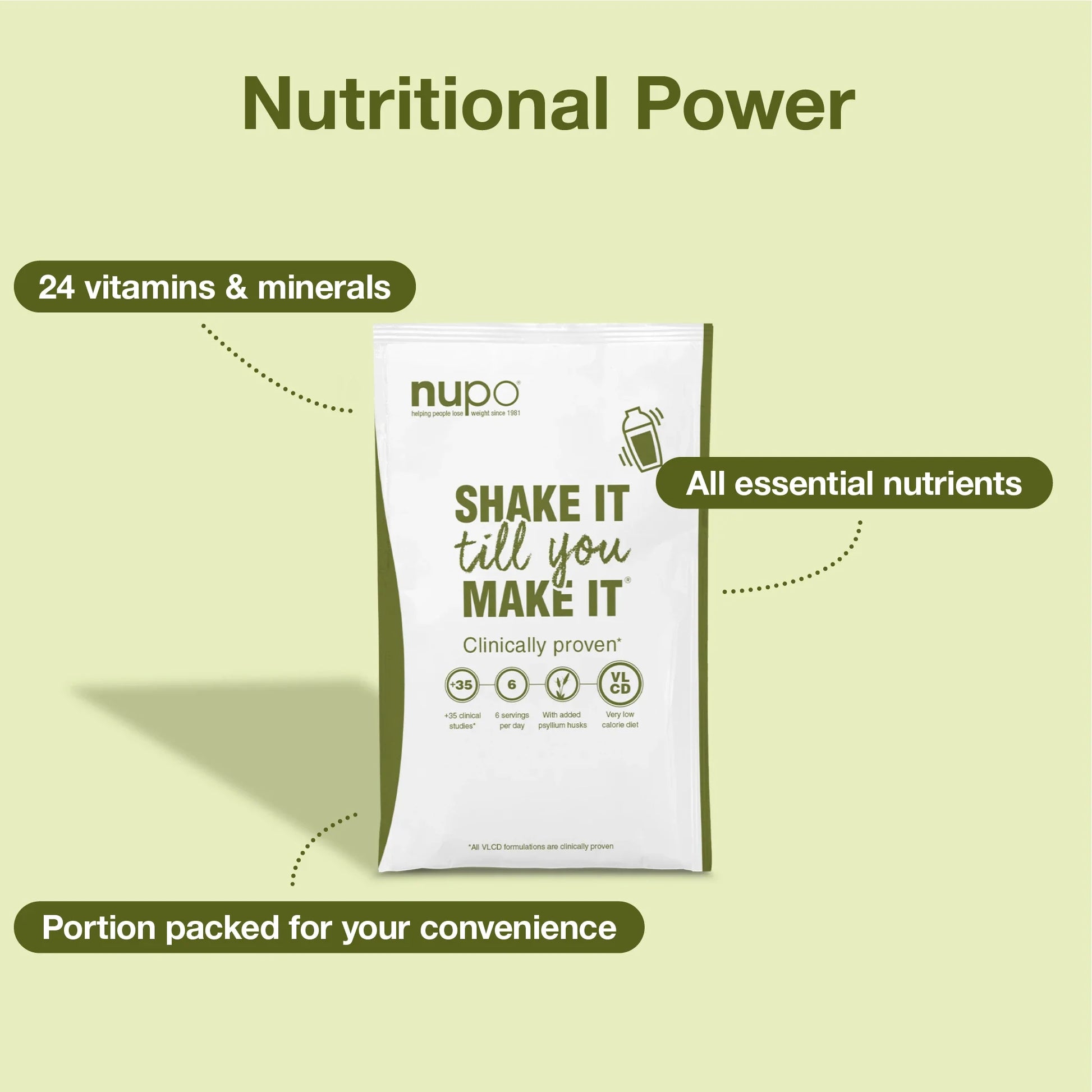 Specially developed to replace a complete daily diet for simple and easy weight control. If you replace your entire daily diet with 6 servings of Nupo Diet, you will get a maximum of 800 kcal a day. Nupo Diet ensures you the right amount of all the essential nutrients, vitamins and minerals that your body needs to bring you safely over the finish line.Nupo Diet contains the fibre psyllium husk. Contains 12 servings.